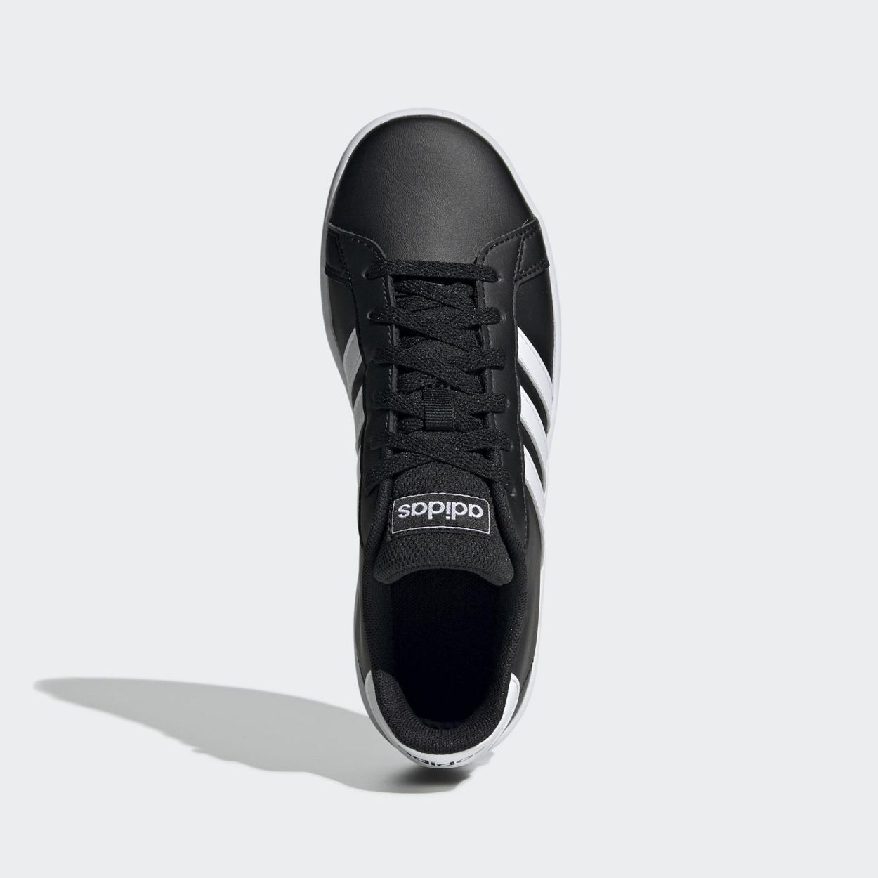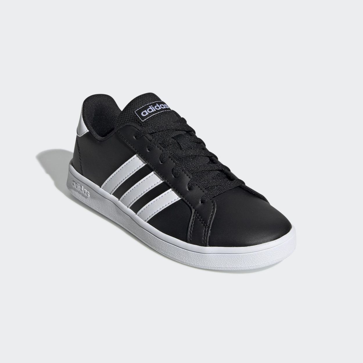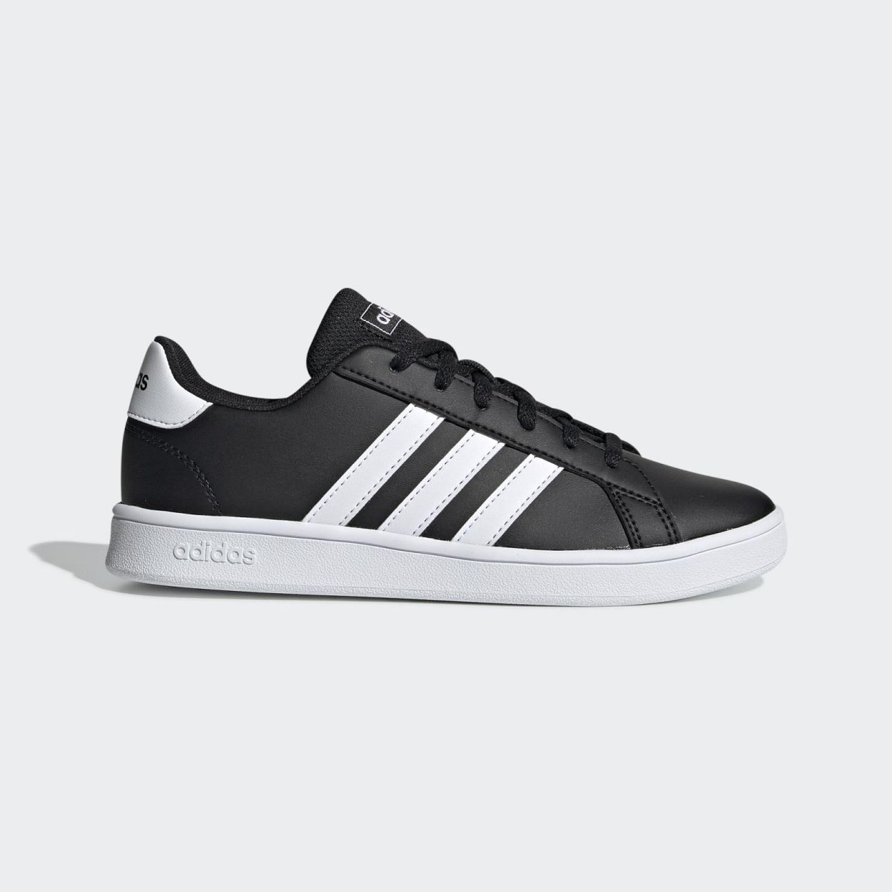 GRAND COURT SCHOENEN LOW-PROFILE SCHOENEN GEÏNSPIREERD OP RETRO SPORTSTIJLEN. Een 70s-stijl met moderne twist. Deze op tennis geïnspireerde schoenen hebben een glad bovenwerk met leder-look en contrasterende 3-Stripes. Een lichtgewicht inlegzool biedt de hele dag comfort.