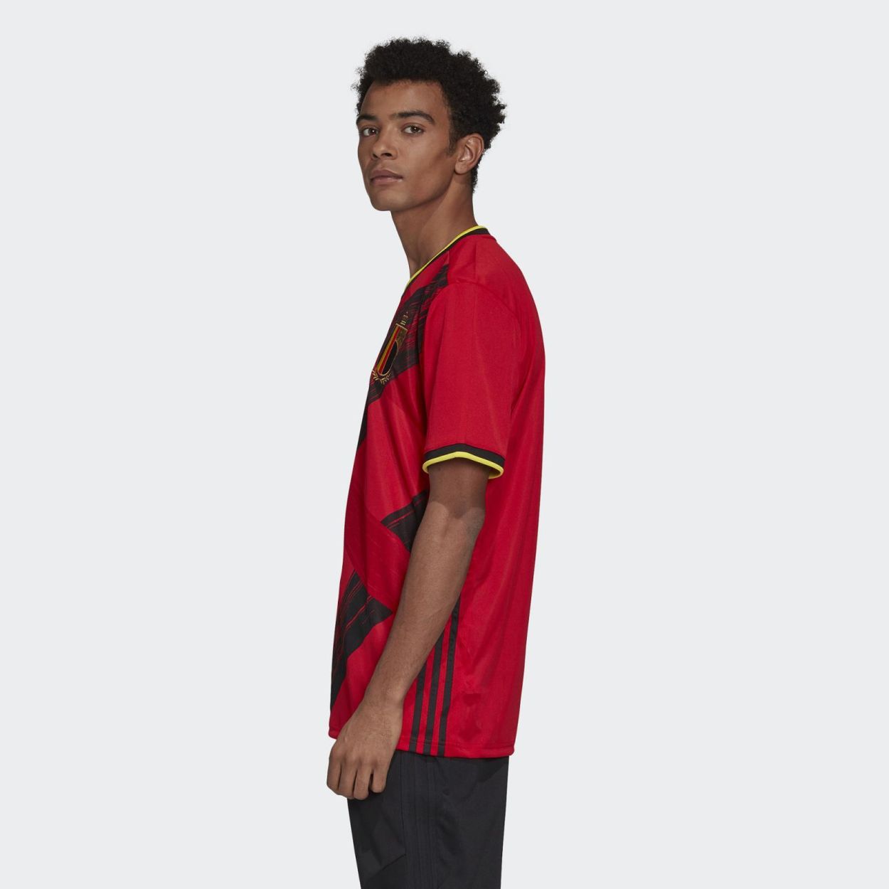 BELGIË THUISSHIRT EEN BELGIË VOETBALSHIRT TER ERE VAN HET IJZERSTERKE ELFTAL. Verschillende streken. Hetzelfde doel. Het nationale elftal van België laat zien dat je met eenheid altijd meer bereikt. Laat in dit adidas shirt tijdens Europese wedstrijden zien voor wie jij juicht. Het design bestaat uit opvallende penseelstreken die samen de letter 'B' vormen. De zachte, vochtabsorberende stof zorgt ervoor dat je droog blijft tot de laatste spannende minuut.
