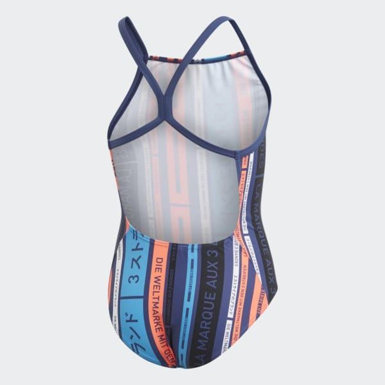 GRAPHIC BADPAK EEN FELGEKLEURD ZWEMPAK DAT OPVALT TIJDENS DE TRAINING. Zwemmen maakt kinderen over de hele wereld gelukkig. Met een kleurige print van adidas slogans in verschillende talen brengt dit badpak een eerbetoon aan wat ons samenbrengt. De robuuste, chloorbestendige stof gaat vele dagelijkse trainingen mee.