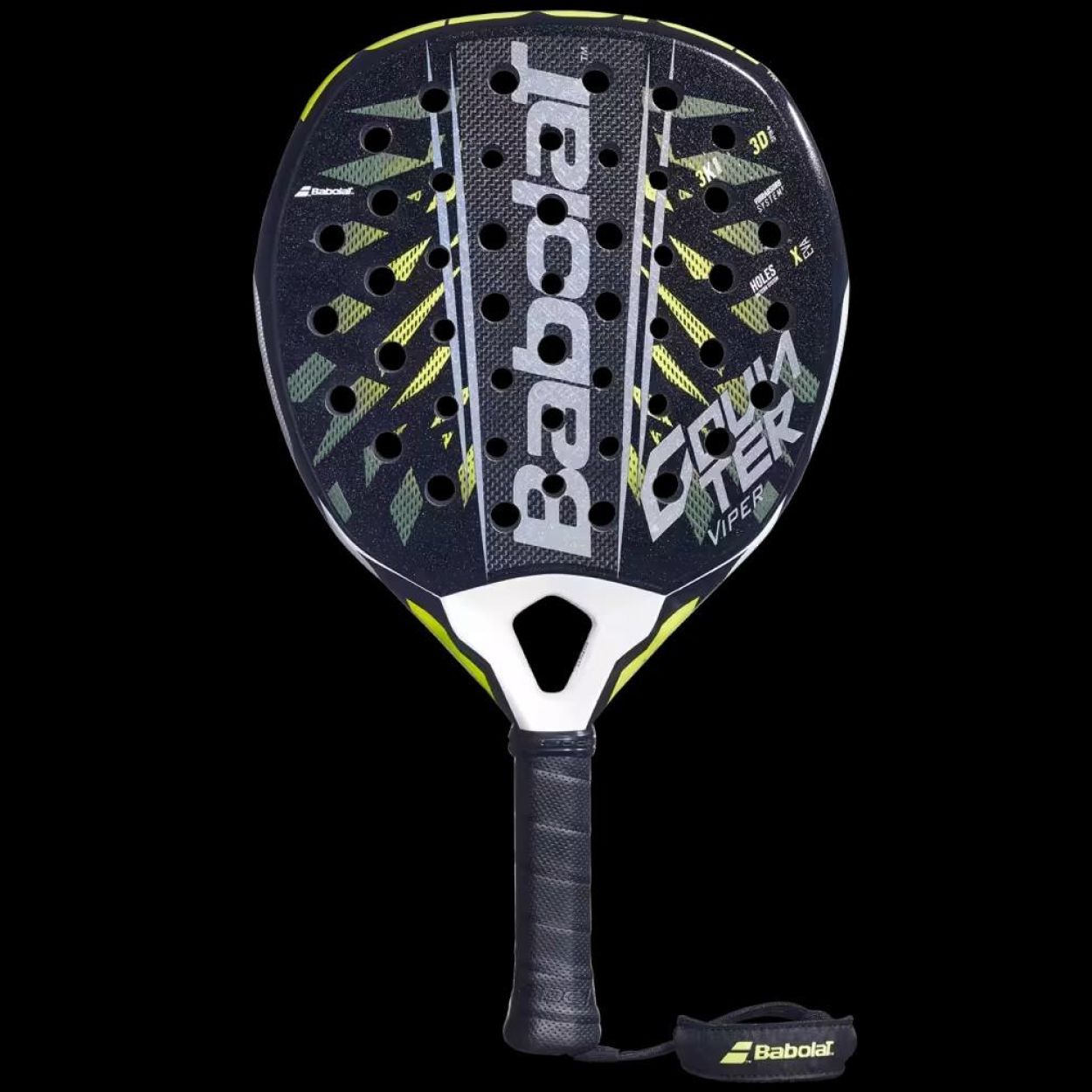 De Babolat Counter Viper is een padelracket dat is ontworpen voor counterstrikkende spelers die vooral precisie willen, aangevuld met extreme kracht door de 3K carbon constructie. Dit racket heeft een ronde vorm, een design met loodgewicht en geavanceerde technologieën zoals 3D Spin+ om de spin te verbeteren, het Holes Pattern System om de verdeling van de gaten te optimaliseren en het Vibrabsorb System 2 om trillingen te verminderen. De professionele spelers van het Babolat Team kunnen spelen met een aangepaste of een ander model van de bestaande uitrusting.