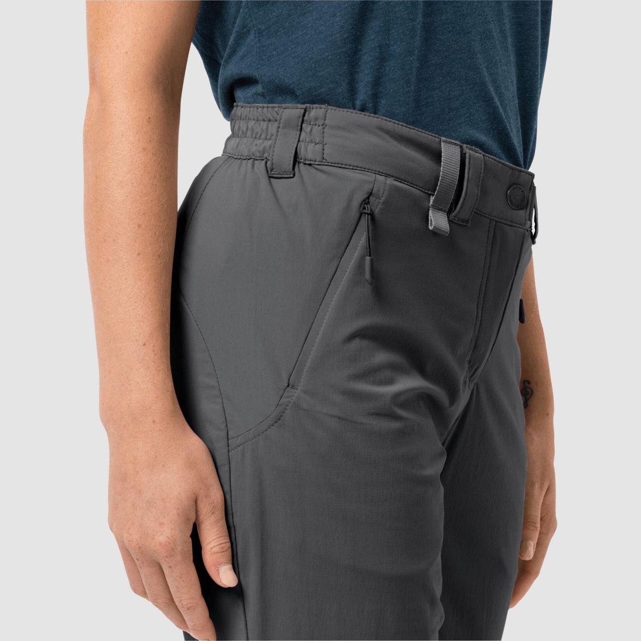 De ACTIVATE LIGHT PANTS is de lichtste softshellbroek uit onze ACTIVATE productserie. Met een gewicht van minder dan een half pond zijn ze een goede keuze voor reizen waarbij elke gram telt. Snel en licht wandelen, veeleisend terrein en lichtgewicht reizen zijn de belangrijkste toepassingsgebieden van deze broek. De ACTIVATE LIGHT PANTS sluit nauw aan op het lichaam en is super rekbaar, zodat je erop kunt vertrouwen dat hij elke beweging die je maakt volgt. Bijkomende attributen zijn onder meer een uitstekend klimaatcomfort, een wind- en waterafstotende afwerking en UV-bescherming. FLEX SHIELD X-LITE UV: zeer licht, zeer goed ademend, bi-elastisch softshell-materiaal met wind- en waterafstotende eigenschappen en UV-bescherming (UPF 40+) (DIN EN 13758: 2007, EN 13758-1: 2001 + A1: 2006 ) 2 steekzakken, achterzak elastische taille op maat gemaakte zoom