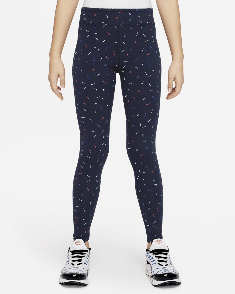 Too many leggings? No such thing, if you live in them 24/7! With that soft, stretchy feel you crave and can wear every day, it's no wonder we call these an Essential. Colourful logos make these Nike Sportswear leggings 100% Swoosh approved. Colour Shown: Obsidian/White Style: DX5026-451